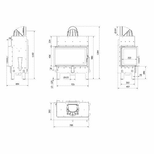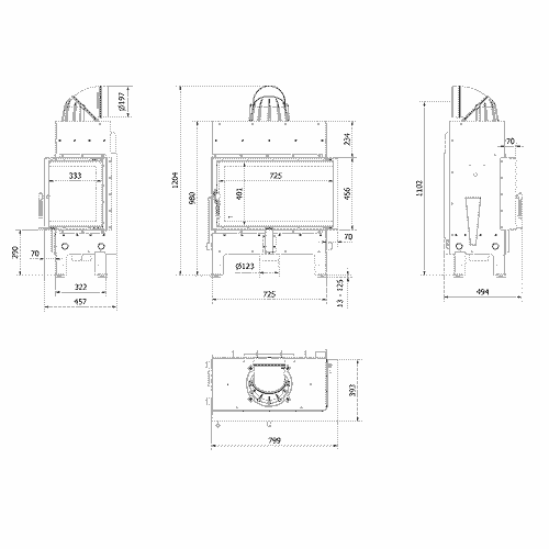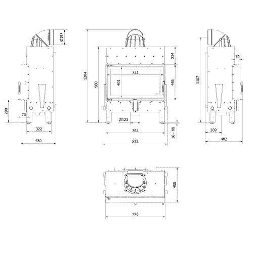 Durchmesser des Rauchabzugs (mm) | 200 |