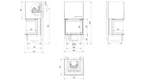 Die Verbrennungskammer ist mit einem dreifachen Luftzufuhrsystem ausgestattet: Primärluft wird auf die Platte geleitet, auf der die Verbrennung stattfindet; Sekundärluft wird durch Öffnungen in der Rückwand zugeführt. Darüber hinaus wird in dem Einsatz ein reines Glassystem (Luftschleier) verwendet.