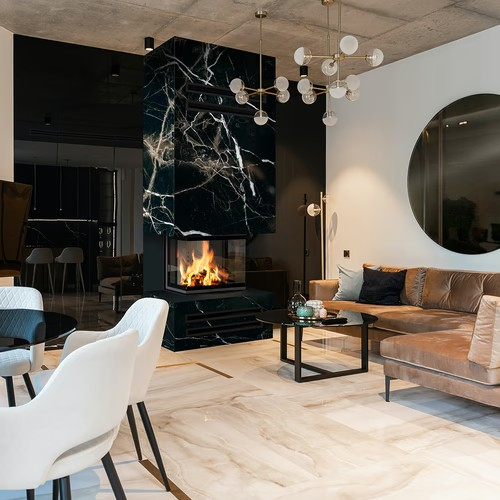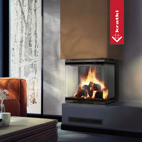 Dekoratives Glas, das Temperaturen von bis zu 660°C standhält, verleiht dem Kamin ein modernes und elegantes Aussehen und vergrößert optisch die Front des Einsatzes.