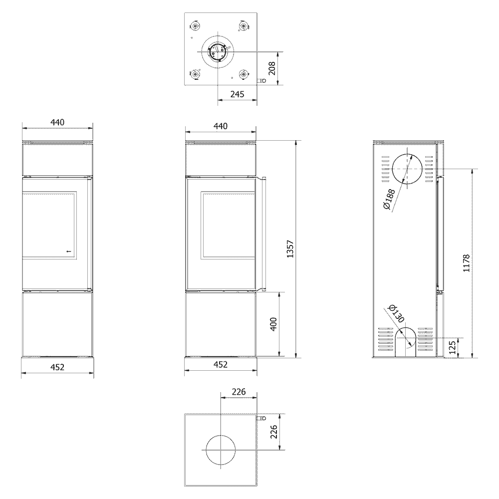 Einfache Installation des Ofens dank der Bohrung im Sockel - Ø200mm.