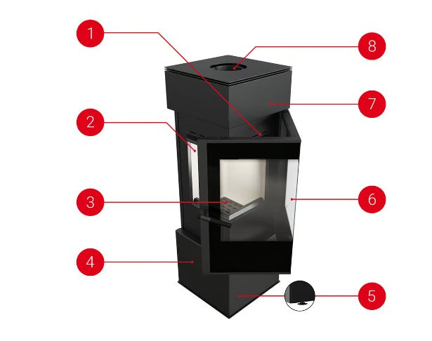 Design-Merkmale | Asche, Dekoratives Glas, Laden der Verbrennungskammer, Lufteinlass |