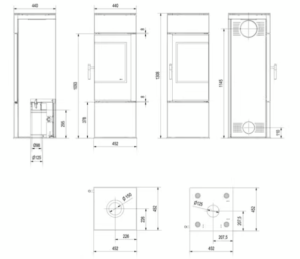 Durchmesser des Rauchabzugs (mm) | 150 |
