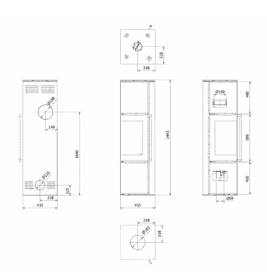 Die Luftzufuhr zum Einsatz erfolgt von außen, dank der eingebauten Luftansaugöffnung fi 100 mm. Die Luftansaugung selbst kann von hinten oder von unten an den Ofen angeschlossen werden.